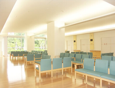 待合ホールは、診察室に付随する中待ちを廃止し、待合ゾーンから直接診察室につながる形式を採用しました。